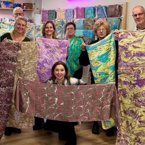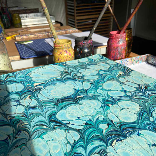 Stap binnen in ons marmeratelier en ontdek de magie van marmeren op water. Eeuwenoude Ebru-technieken, unieke patronen en handgemaakte creaties komen hier samen.