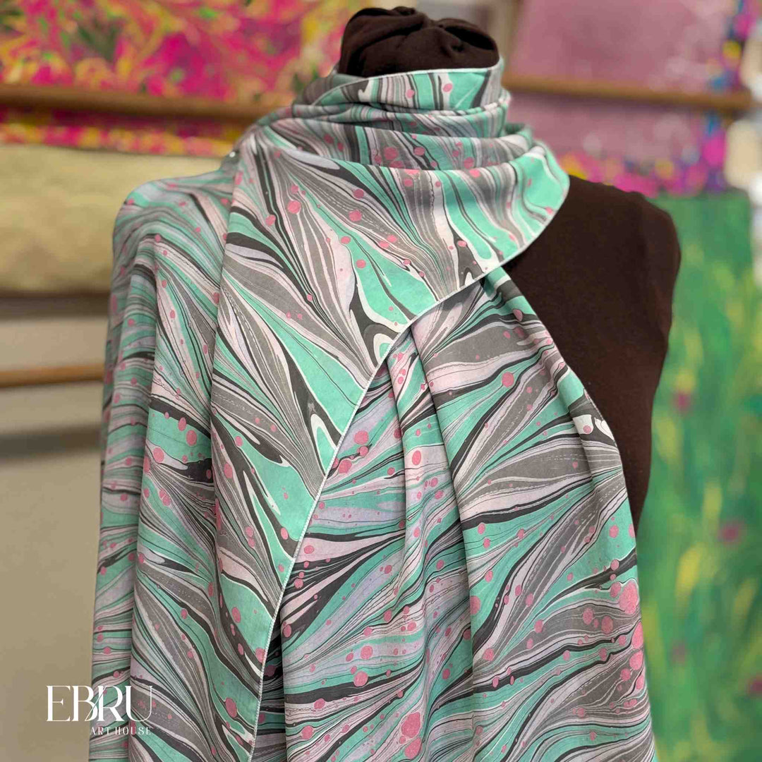 Papier Marmeren is een unieke kunst waarbij je op water kunt schilderen. De kunst is uniek, omdat er geen identieke versie gemaakt kan worden op het water. Zie de video voor een duidelijke beeld hoe "ebru" gemaakt wordt. Iedere kunstwerk komt verschillend uit door de diverse technieken. De verf op het water is van milieu vriendelijke materialen gemaakt.