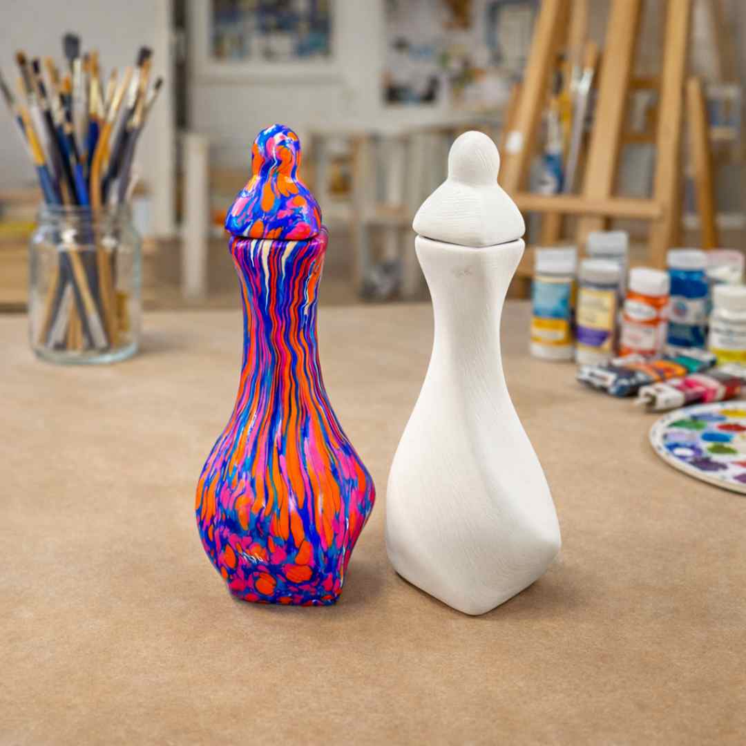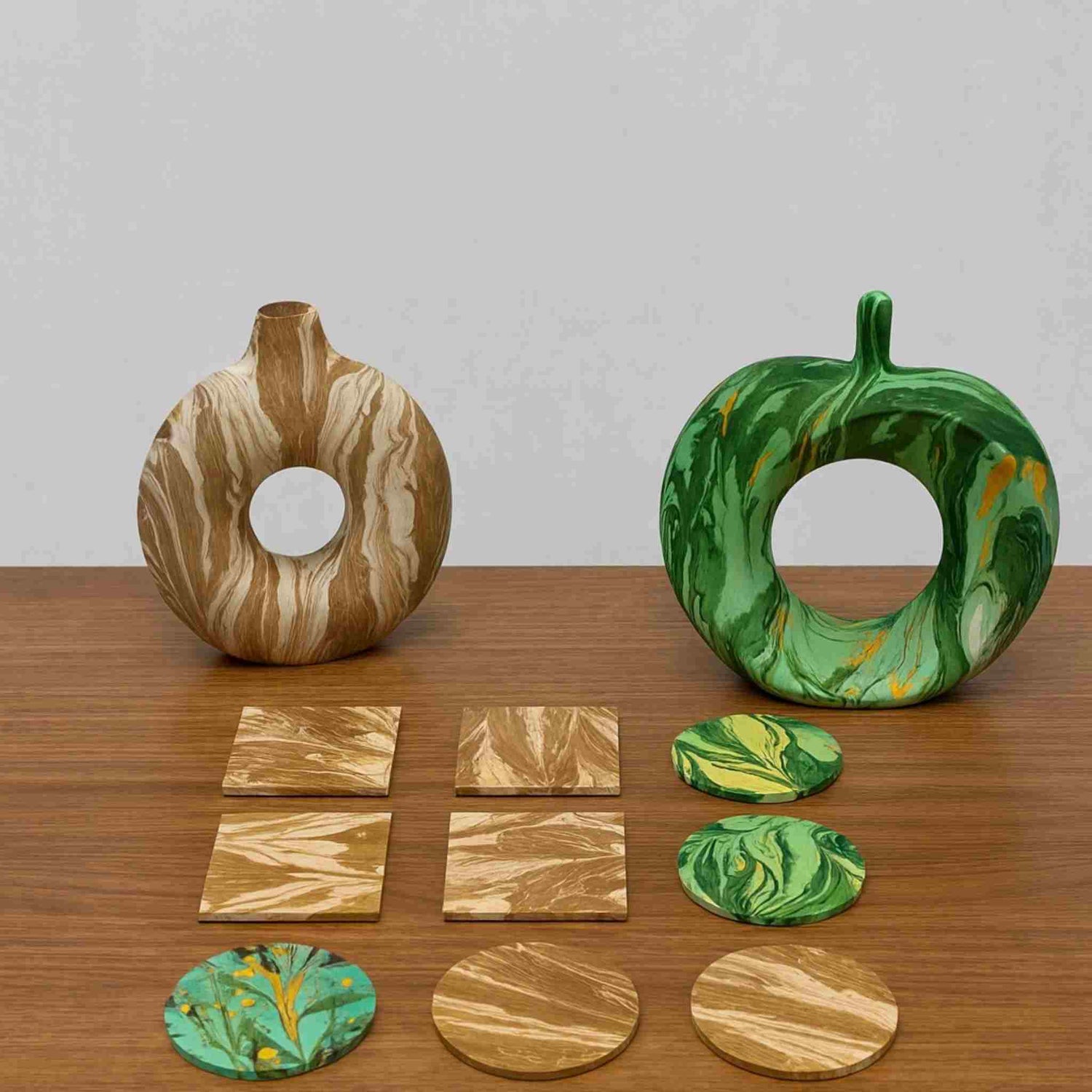 Begin je magische marmerreis: laat patronen ontstaan op water en breng ze vervolgens over op keramische vazen, onderzetters en diverse unieke woondecoraties.