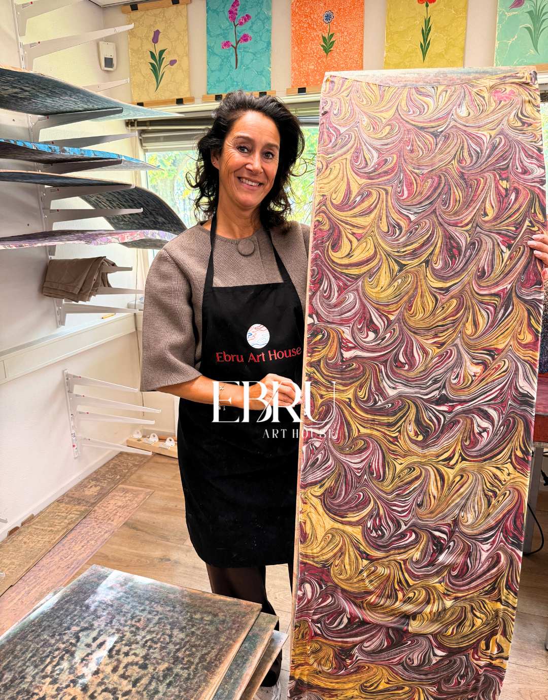 In deze workshop leer je de eeuwenoude en de populaire ebru/marbling techniek: schilderen met verf op water. Je brengt je eigen patroon tot leven en drukt dit over op een luxe zijden sjaal. Het resultaat? Een draagbaar kunstwerk dat niemand anders heeft.